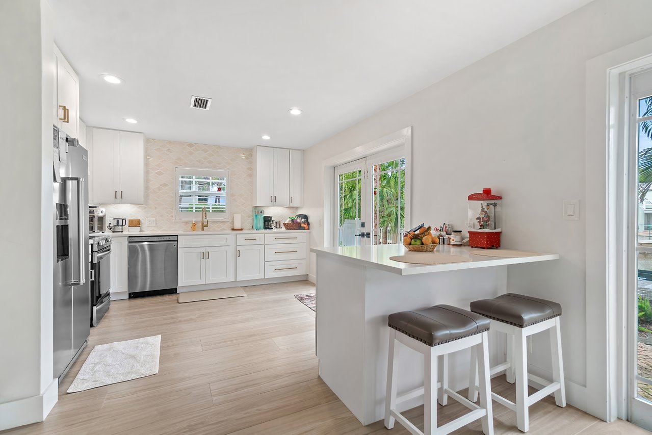 Experience coastal living at its finest in this renovated corner unit, a boater’s and beachcomber’s dream. Enjoy water views from nearly every room, a modern kitchen with wood cabinets, stainless steel appliances, and granite countertops. Additional features include marble flooring, a tankless water heater, impact French doors, a decorative fireplace, a 1-car garage, extra guest parking, and a 2019 dock and seawall.